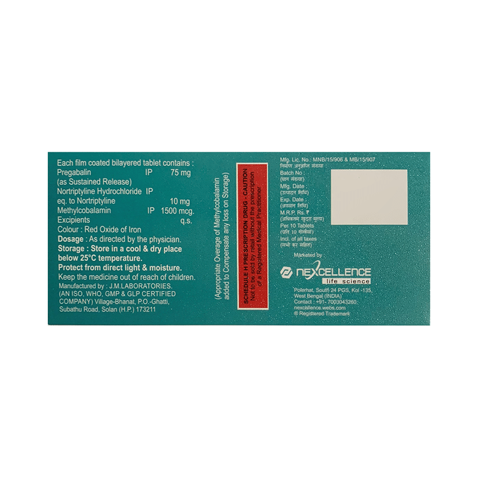 Pregabalin 75mg + Methylcobalamin 1500mcg + Nortriptyline 10mg +