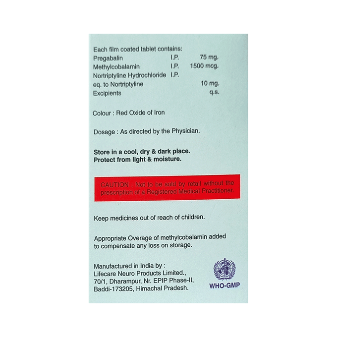 Pregabalin 75mg + Methylcobalamin 1500mcg + Nortriptyline 10mg +