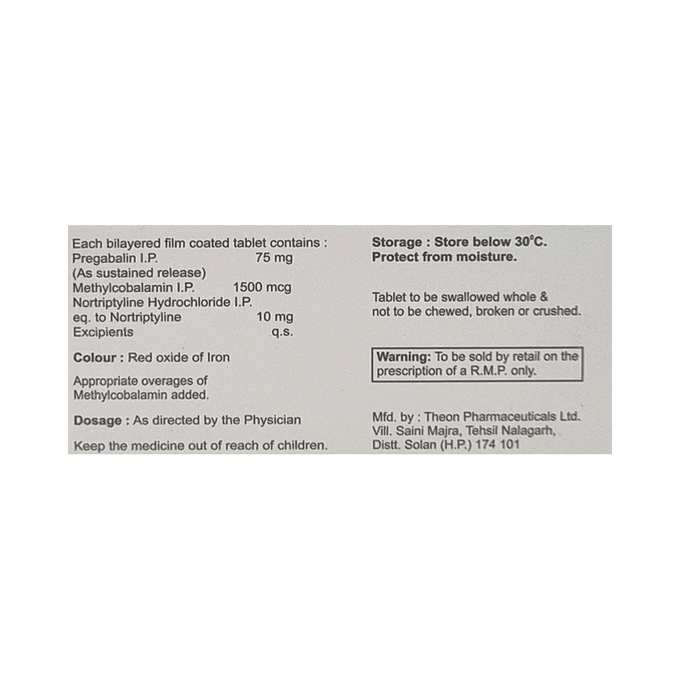 Pregabalin 75mg + Methylcobalamin 1500mcg + Nortriptyline 10mg +