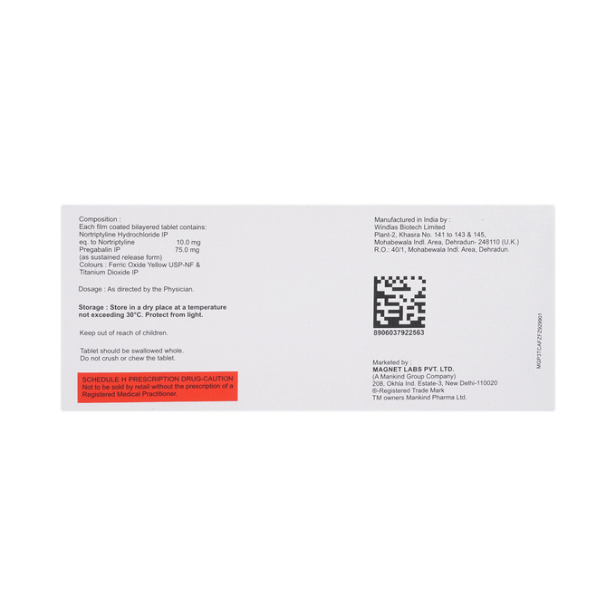 Pregabalin 75mg + Nortriptyline 10mg +