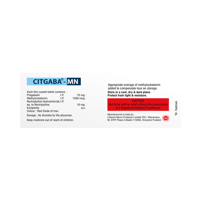 Pregabalin 75mg + Methylcobalamin 1500mcg + Nortriptyline 10mg +