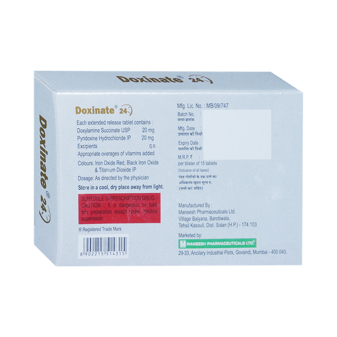 Vitamin B6 Pyridoxine 20mg + Doxylamine 20mg +