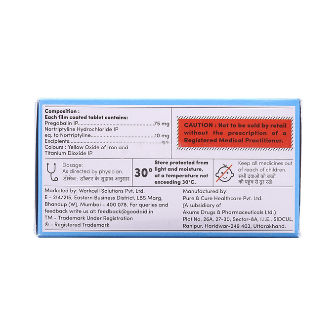 Pregabalin 75mg + Nortriptyline 10mg +