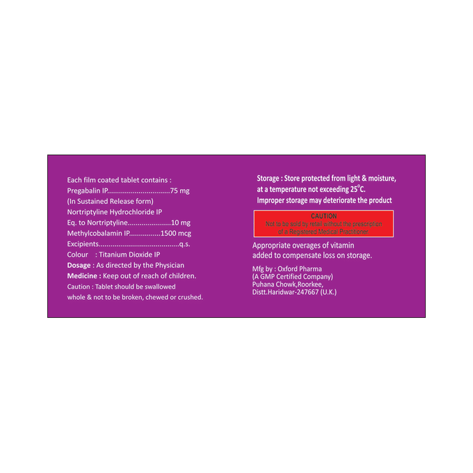 Pregabalin 75mg + Methylcobalamin 1500mcg + Nortriptyline 10mg +