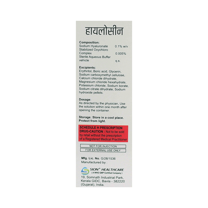 Sodium Hyaluronate 0.1%w/v +