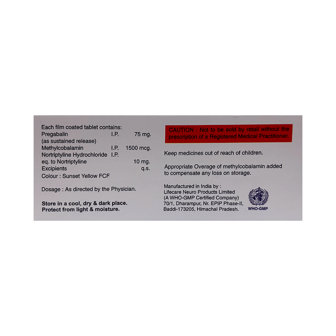 Pregabalin 75mg + Methylcobalamin 1500mcg + Nortriptyline 10mg +