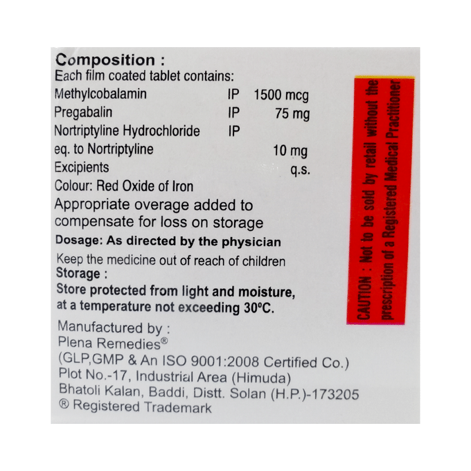 Pregabalin 75mg + Methylcobalamin 1500mcg + Nortriptyline 10mg +