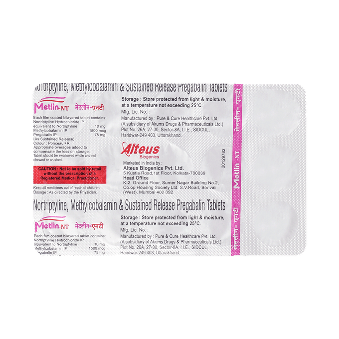 Pregabalin 75mg + Methylcobalamin 1500mcg + Nortriptyline 10mg +