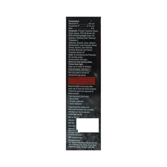 Minoxidil 5%w/v + Finasteride 0.1%w/v +