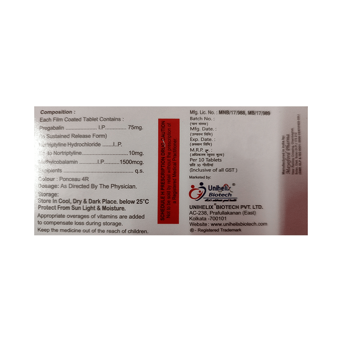 Pregabalin 75mg + Methylcobalamin 1500mcg + Nortriptyline 10mg +