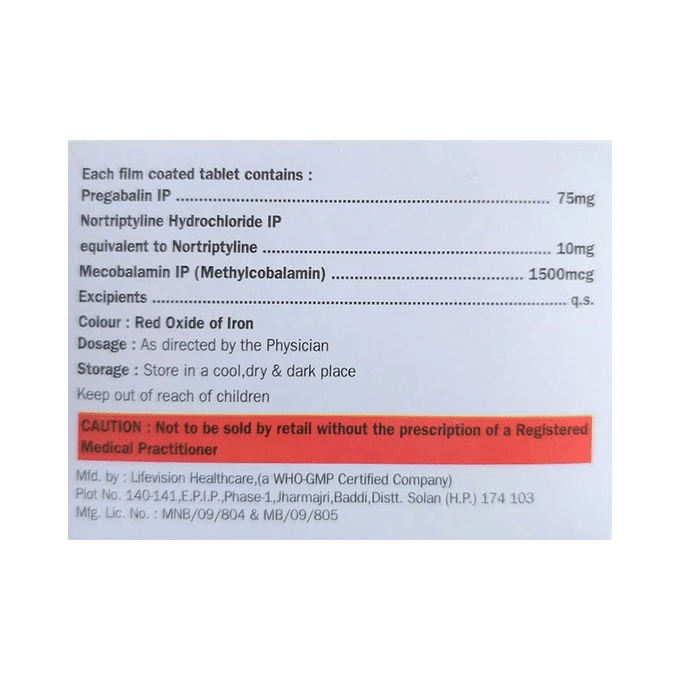 Pregabalin 75mg + Methylcobalamin 1500mcg + Nortriptyline 10mg +