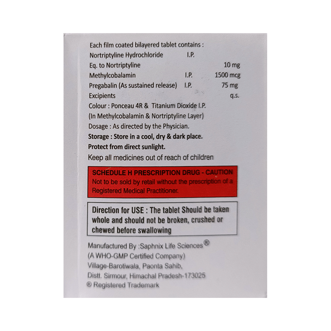 Pregabalin 75mg + Methylcobalamin 1500mcg + Nortriptyline 10mg +
