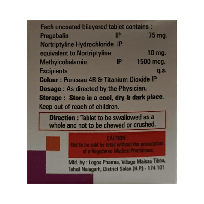 Pregabalin 75mg + Methylcobalamin 1500mcg + Nortriptyline 10mg +