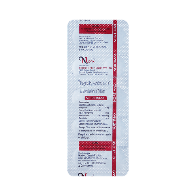 Pregabalin 75mg + Methylcobalamin 1500mcg + Nortriptyline 10mg +