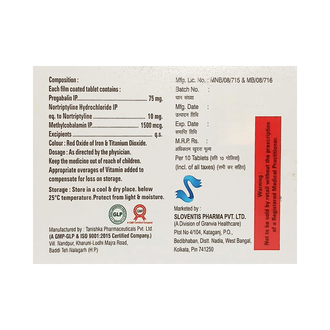 Pregabalin 75mg + Methylcobalamin 1500mcg + Nortriptyline 10mg +