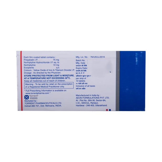 Pregabalin 75mg + Nortriptyline 10mg +