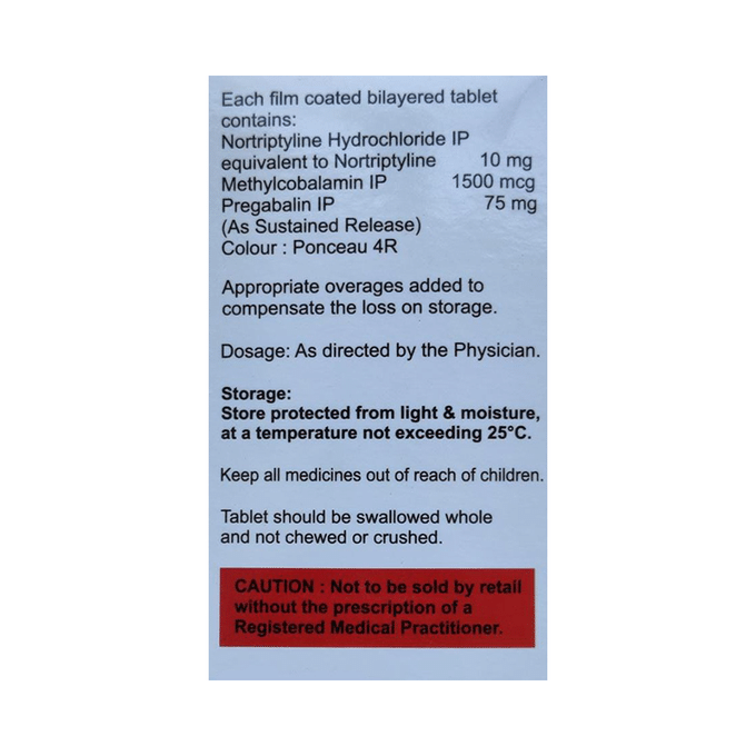 Pregabalin 75mg + Methylcobalamin 1500mcg + Nortriptyline 10mg +
