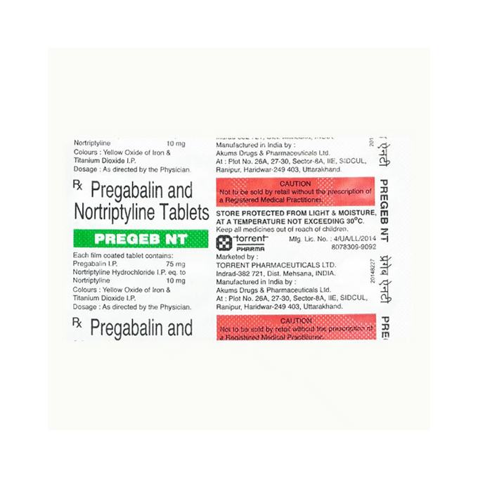 Pregabalin 75mg + Nortriptyline 10mg +