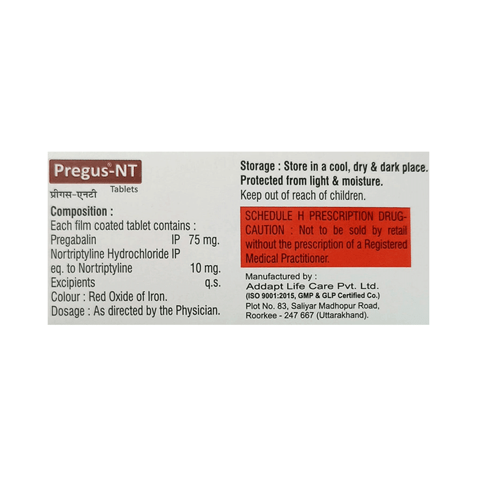 Pregabalin 75mg + Nortriptyline 10mg +