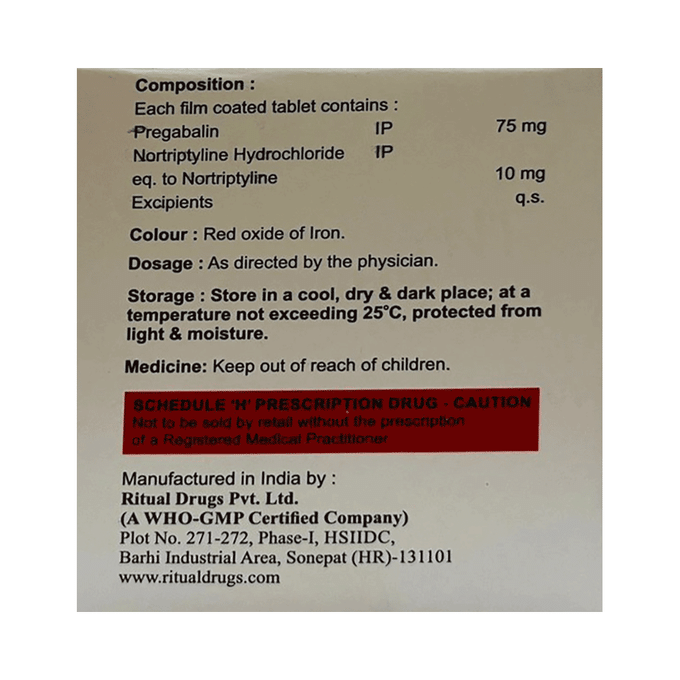 Pregabalin 75mg + Nortriptyline 10mg +
