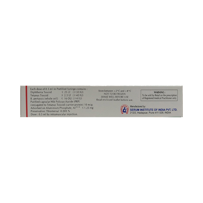 Haemophilus Type B Conjugate Vaccine 10mcg + Diphtheria Toxoid 25LF + Pertussis Toxoid 16OU + Tetanus Toxoid 2.5LF +
