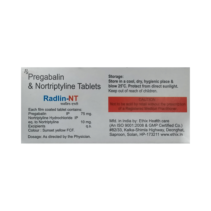 Pregabalin 75mg + Nortriptyline 10mg +