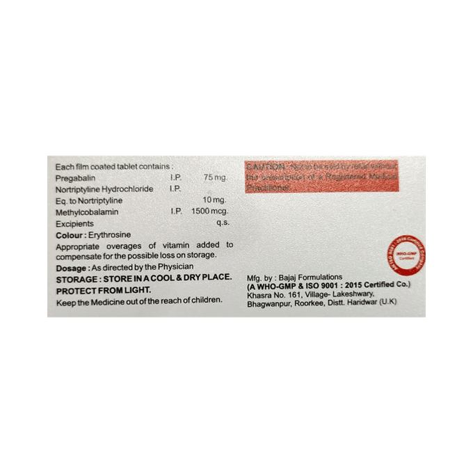 Pregabalin 75mg + Methylcobalamin 1500mcg + Nortriptyline 10mg +