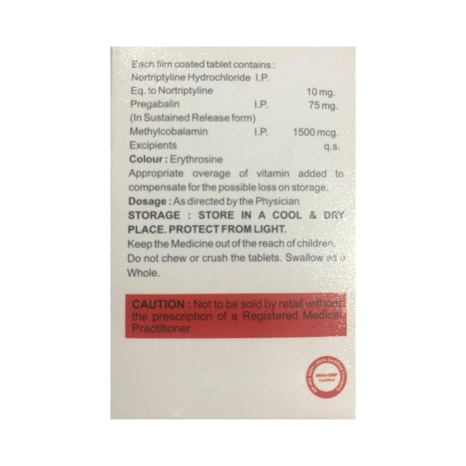 Pregabalin 75mg + Methylcobalamin 1500mcg + Nortriptyline 10mg +